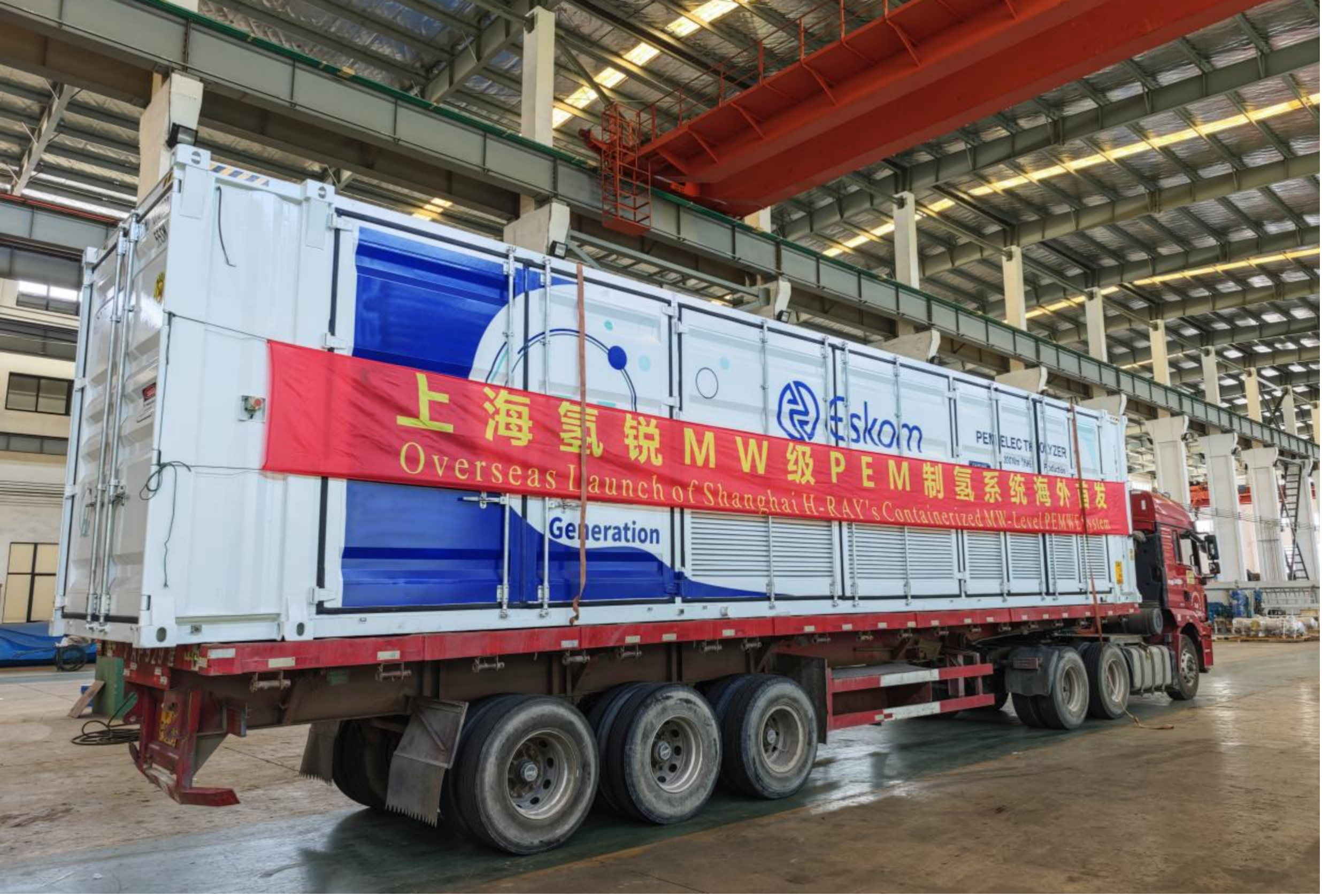 2025年10月8日“国际氢能日”,上海氢锐科技有限公司(以下简称“上海氢锐”)宣布,其欧盟CE认证的MW级PEM制氢设备出海发往南非国家电力公司ESKOM旗下某项目地,系中国制造MW级PEM制氢装备首次出海。该产品满足光伏制氢波动性运行场景的需求,具有高度集成、自动化以及低能耗等特点。高纯氢气(Purity:99.999%,Dew point:-75 °C)主要用于火力发电厂的氢冷发电机系统,其余通过园区管道提供给附近的化工企业,标志着国产MW级PEM制氢设备在工业应用领域的一次重要进展。